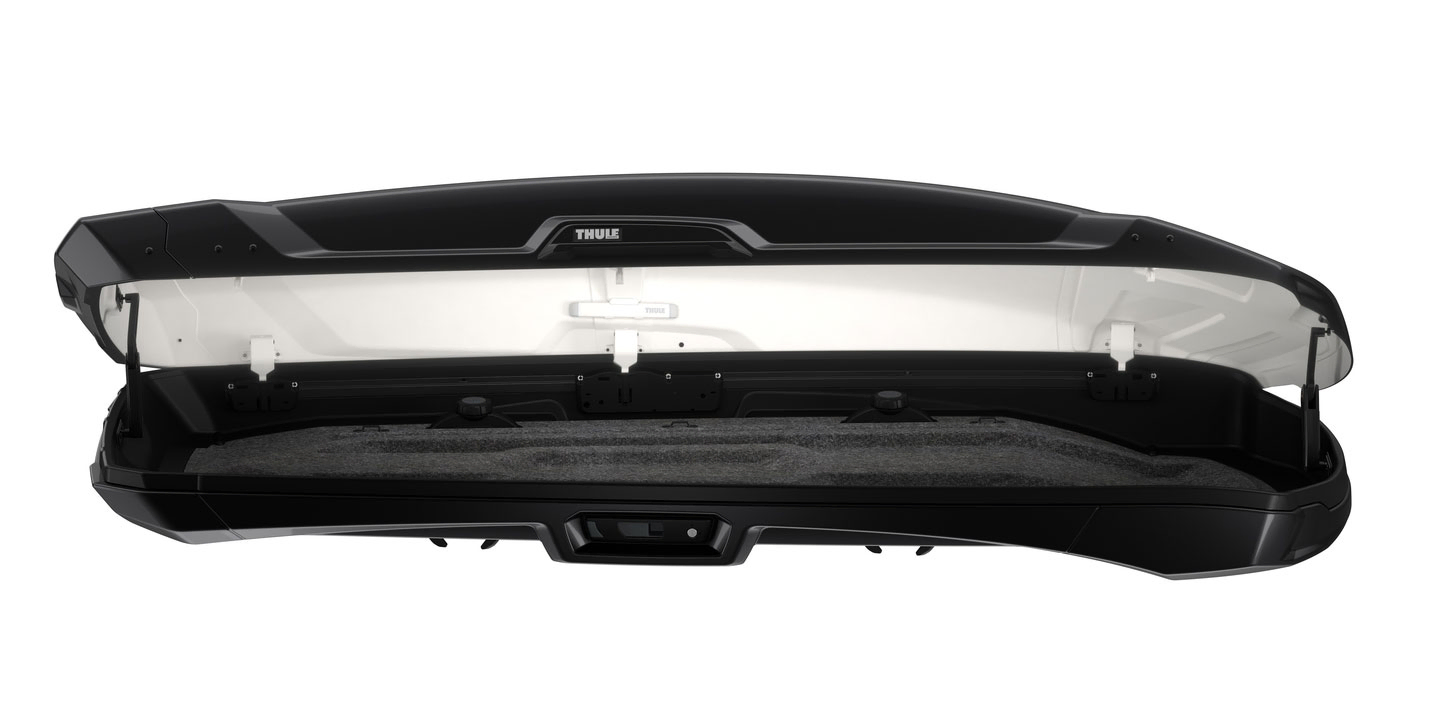 Thule Vector Alpine roof box is a premium box designed with carrying snow sports gear like skis and snowboards in mind, it combines top of the line features along with performance and styling. With an elegant yet sporty design that perfectly compliments the look of any car or van, thanks to the seamless integration of the box lid and base giving a distinctive feel. This premium box styling demands features to match and Thule did not disappoint, giving the Vector box a felt-lined base to add not only a luxurious feel but also to give added protection to the cargo loaded in the box. The inside of the box lid is white-coloured, this as well as the integrated LED light facilitates much easier loading and unloading at night and in low light conditions.