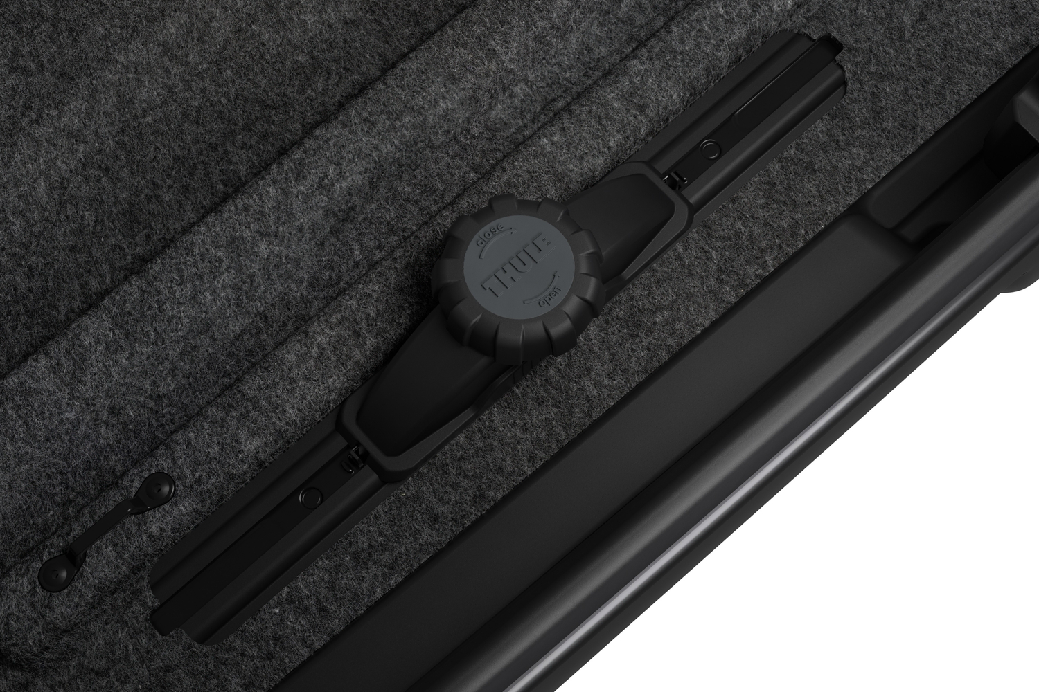 Fitting the roof box on to your roof rack is a quick and easy task thanks to the Thule PowerClick quick-mounting system. These fittings come equipped with integrated torque indicators which 'Click' when they are properly mounted, ensuring that easy, fast and secure fitting. These PowerClick mountings fit through the box on sliding rails which allow for the box to be positioned in the optimum place our your roof bars allowing for unobstructed boot entry with minimal, if any, contact between the boot lid and roof box.