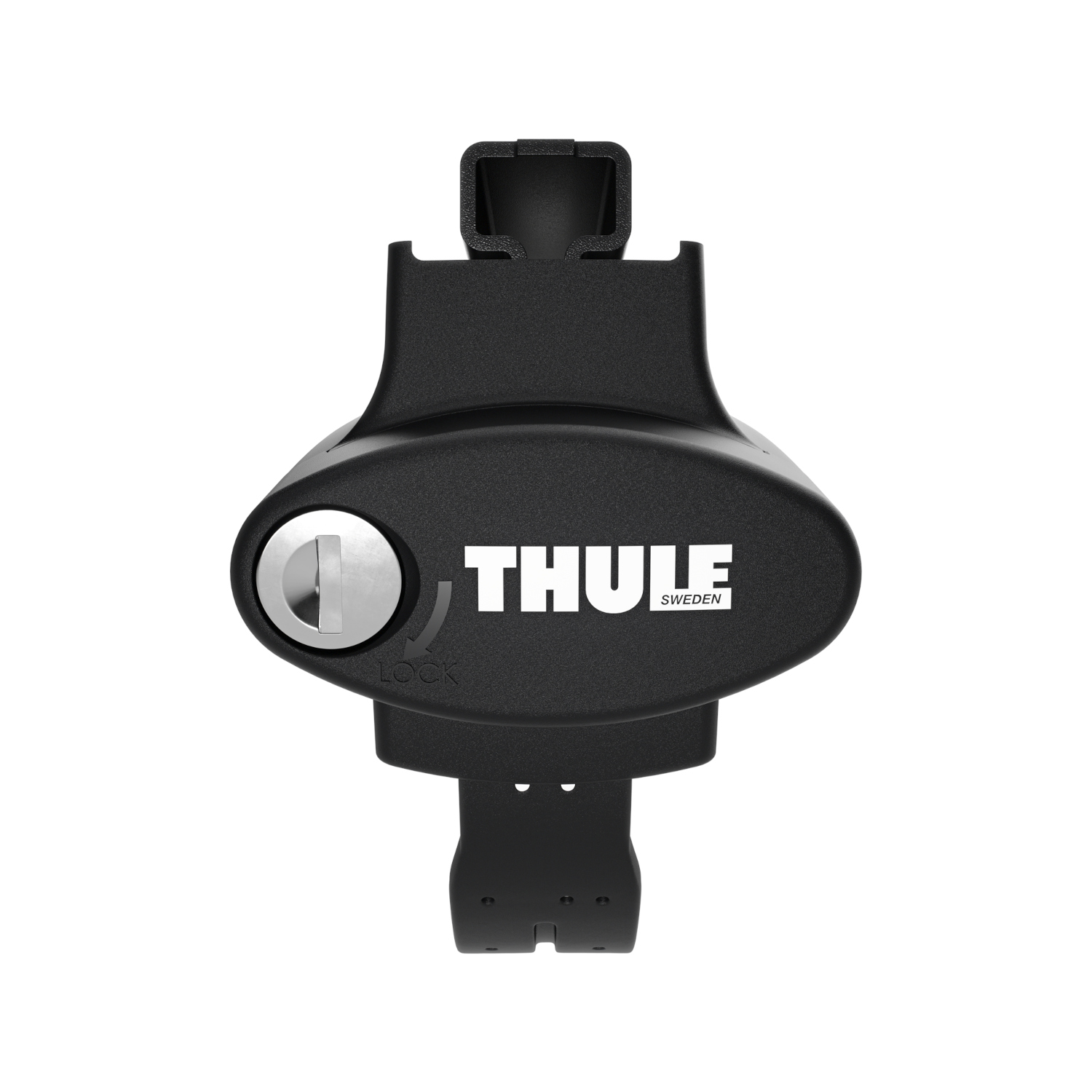 Pack of four easy-to-install clamps for Thule Edge roof racks, for vehicles with raised railings. The 7204 foot clamps secure around the vehicles raised roof rails.